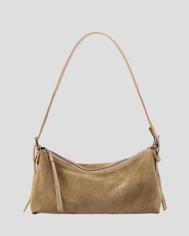 This bomber jacket features a refined notched lapel and relaxed batwing sleeves. The smooth, velvety surface and structured silhouette create a modern, elegant look. The pleated hem and concealed front placket add a clean, contemporary finish suitable for both casual and dressed-up outfits.