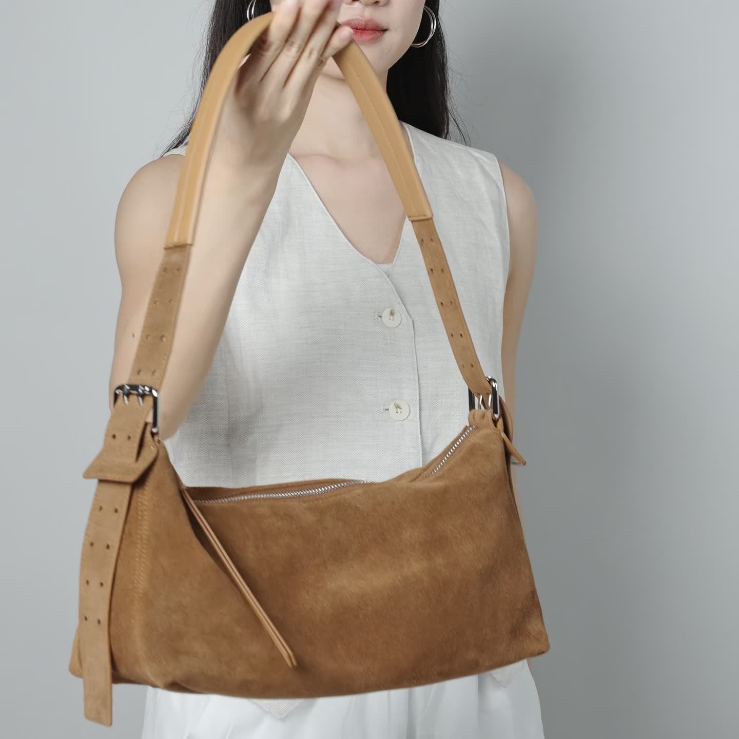 This women’s shoulder bag features a compact, elongated silhouette designed for comfortable everyday use. The slim profile sits naturally under the arm, making it suitable for city wear, office settings, and casual outings. The clean shape and minimal detailing allow easy pairing with a wide range of outfits.