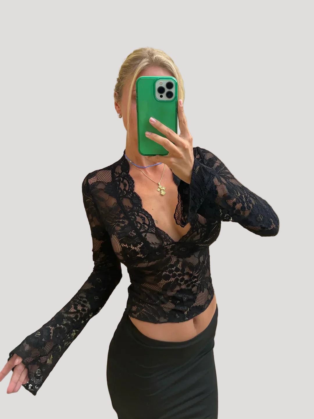 • Sleeves: Long lace sleeves