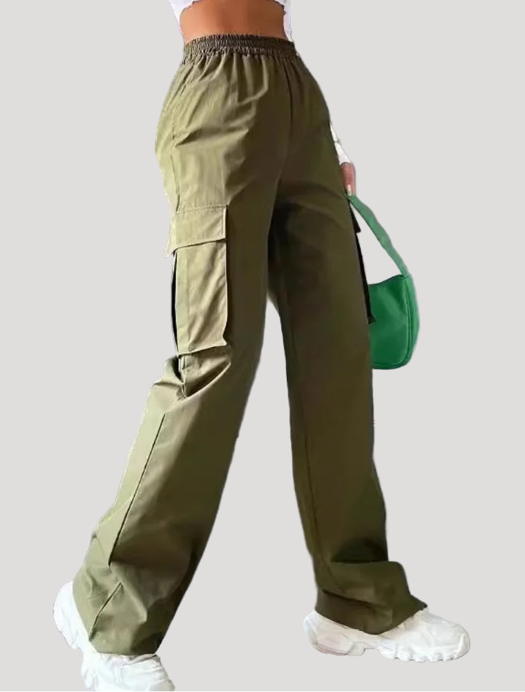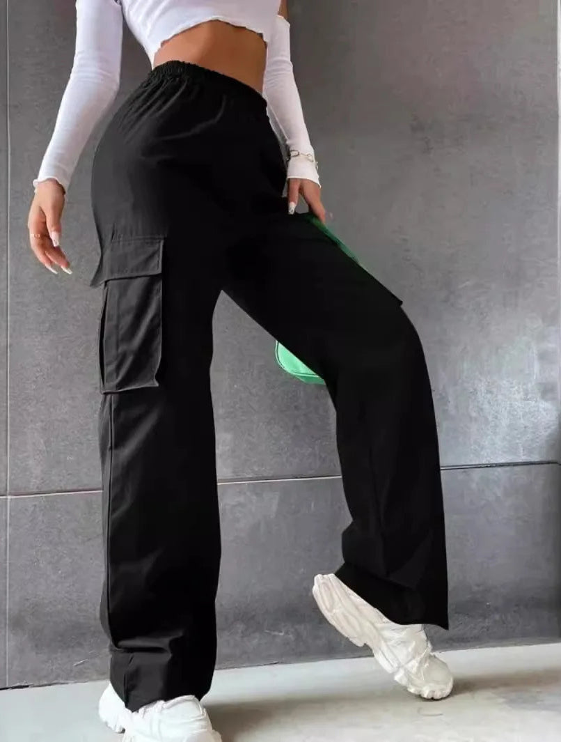 These women’s jogger pants feature a comfortable high-rise waistband with a relaxed straight-leg fit. The soft drape and roomy silhouette create an effortless casual look, while the utility-inspired detailing adds a modern touch. Perfect for lounging, commuting, or everyday streetwear styling.