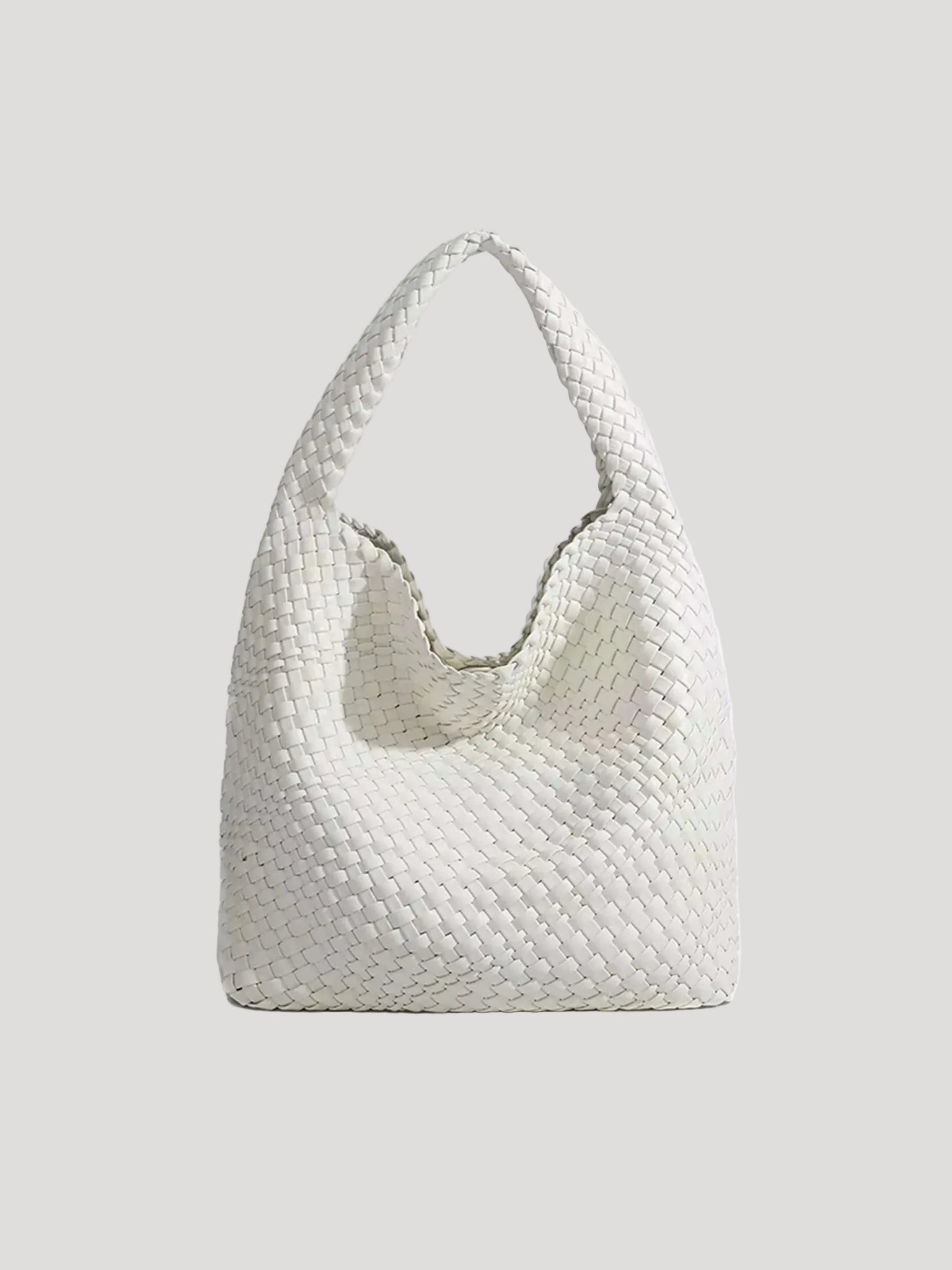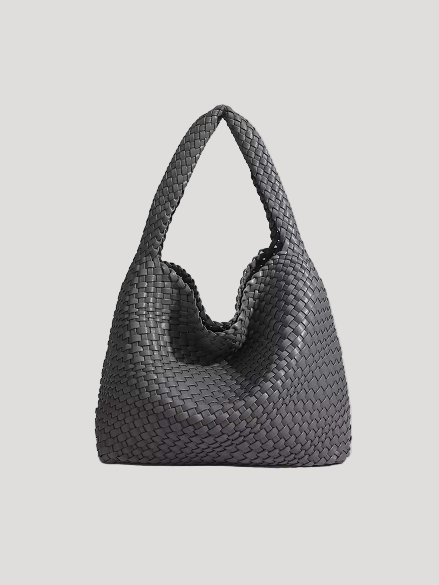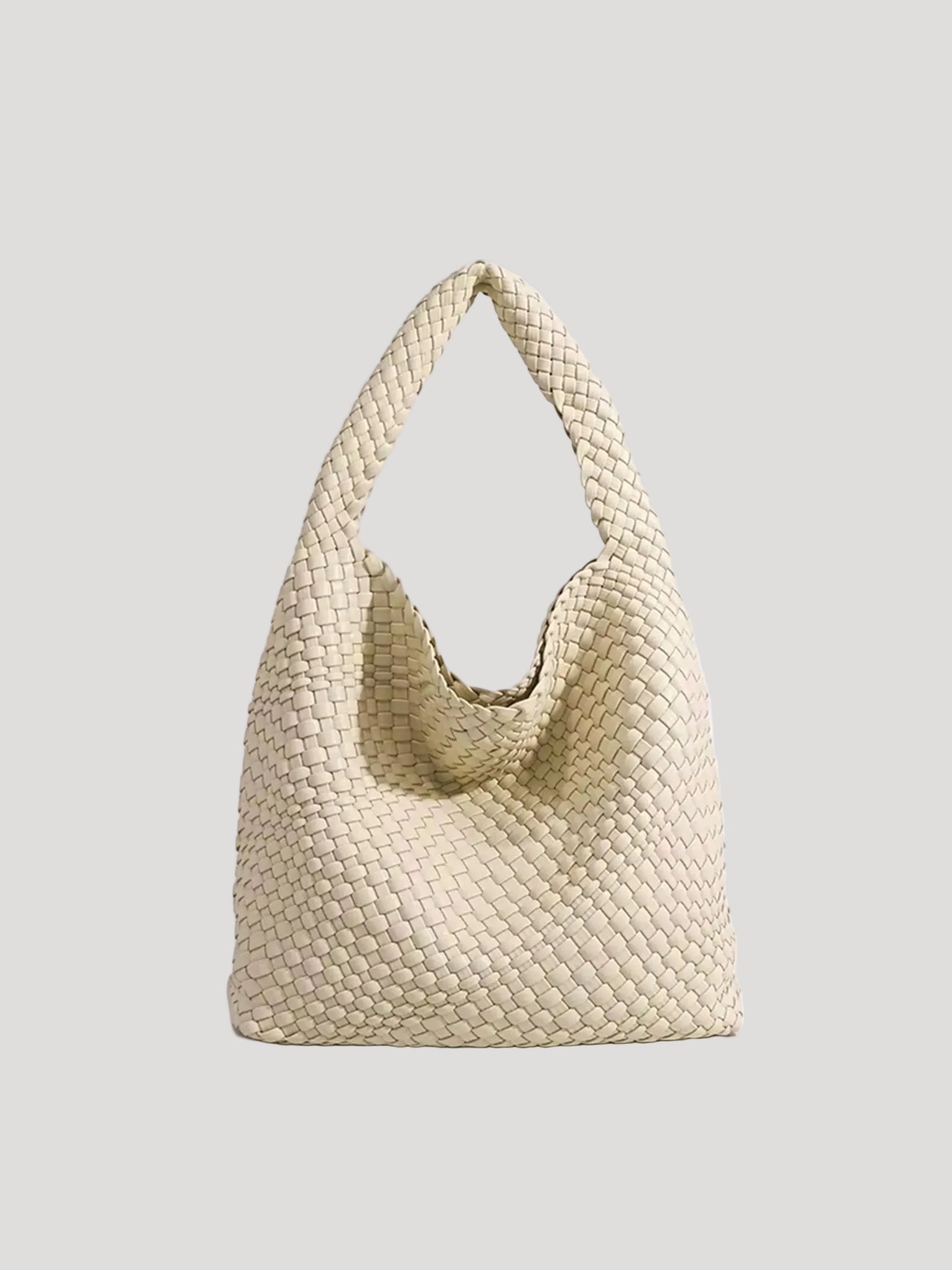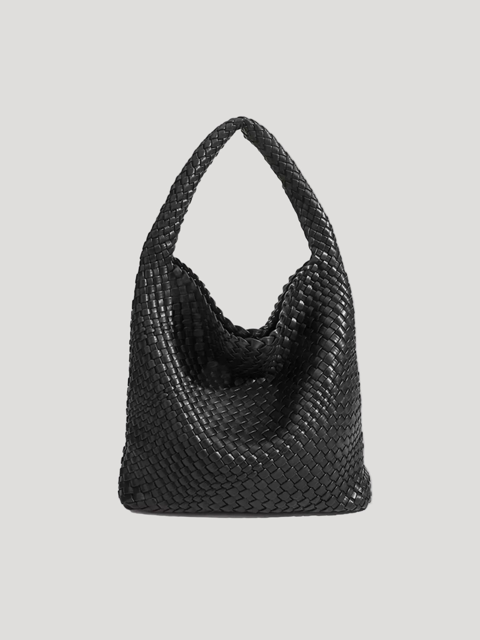 This women’s hobo bag features a soft, curved silhouette with a continuous woven surface. The design includes a wide, integrated shoulder strap and a relaxed structure that naturally adapts to movement when worn. Its medium-sized interior layout makes it suitable for carrying daily essentials in everyday and work-related settings.