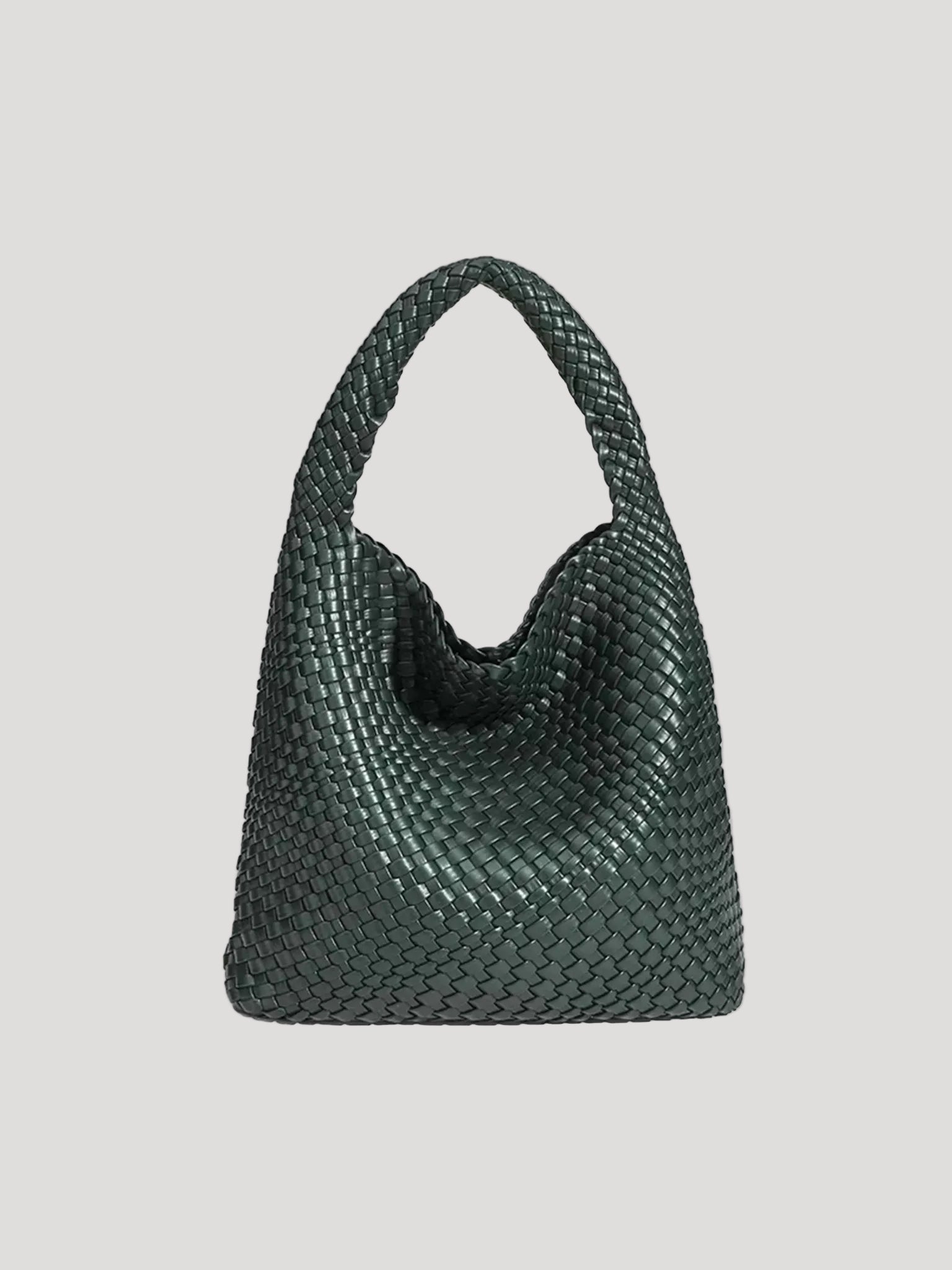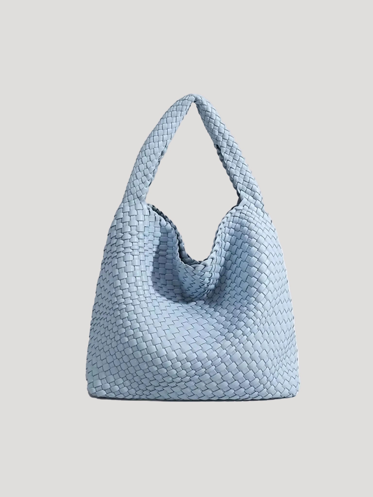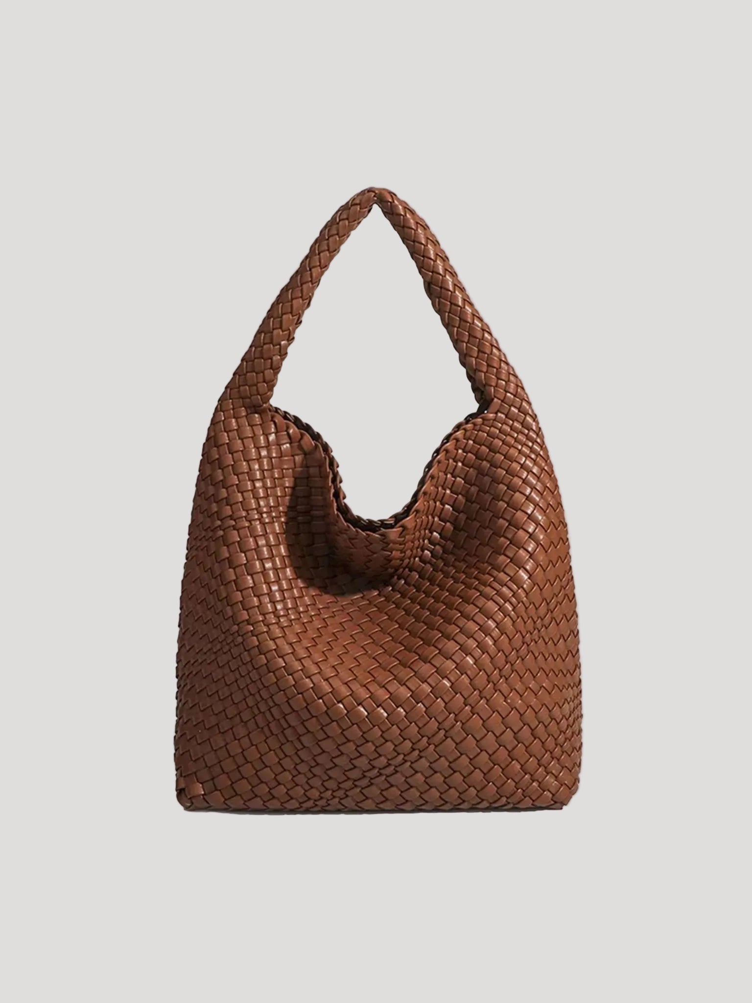 This women’s hobo bag features a soft, curved silhouette with a continuous woven surface. The design includes a wide, integrated shoulder strap and a relaxed structure that naturally adapts to movement when worn. Its medium-sized interior layout makes it suitable for carrying daily essentials in everyday and work-related settings.