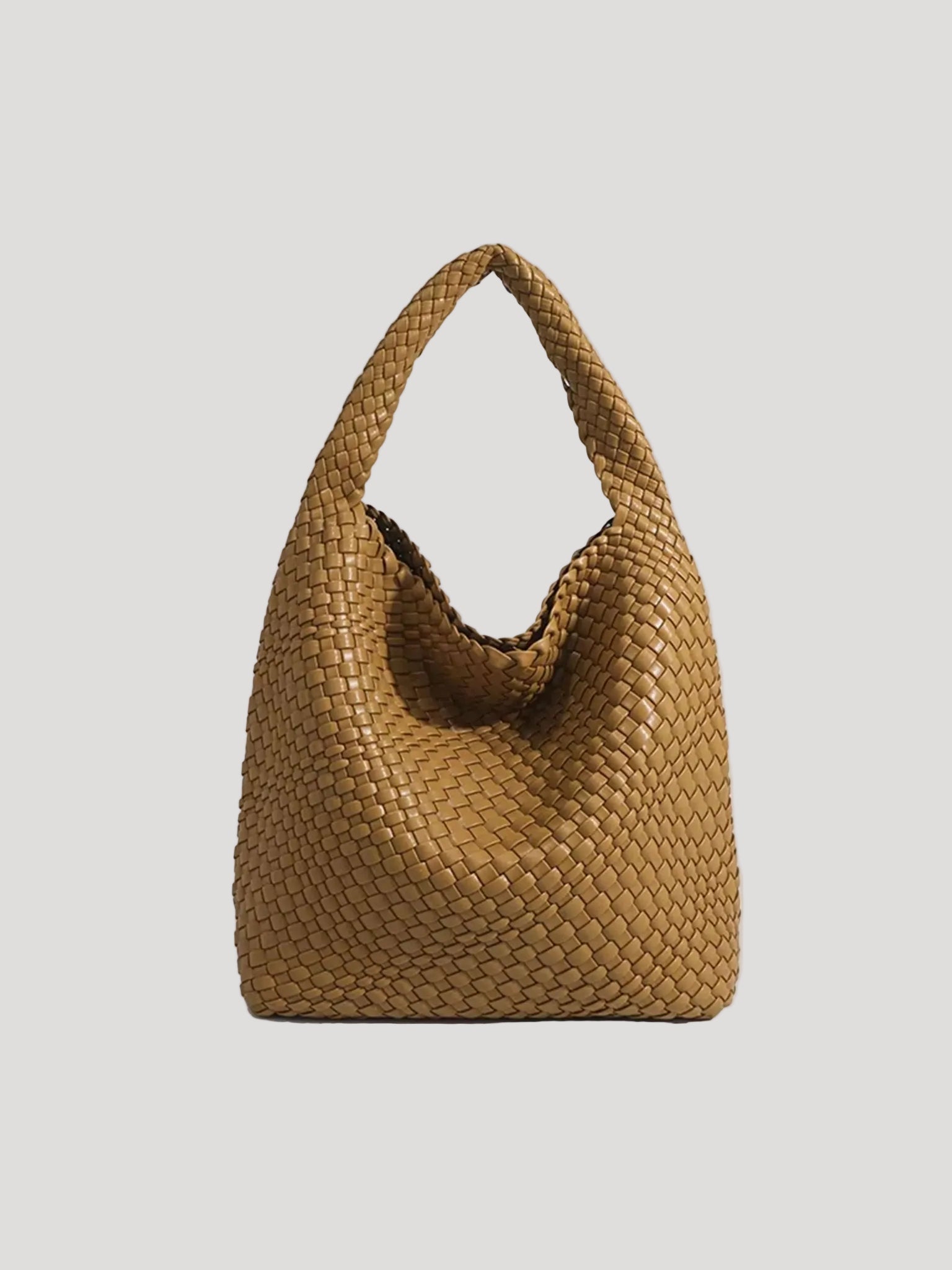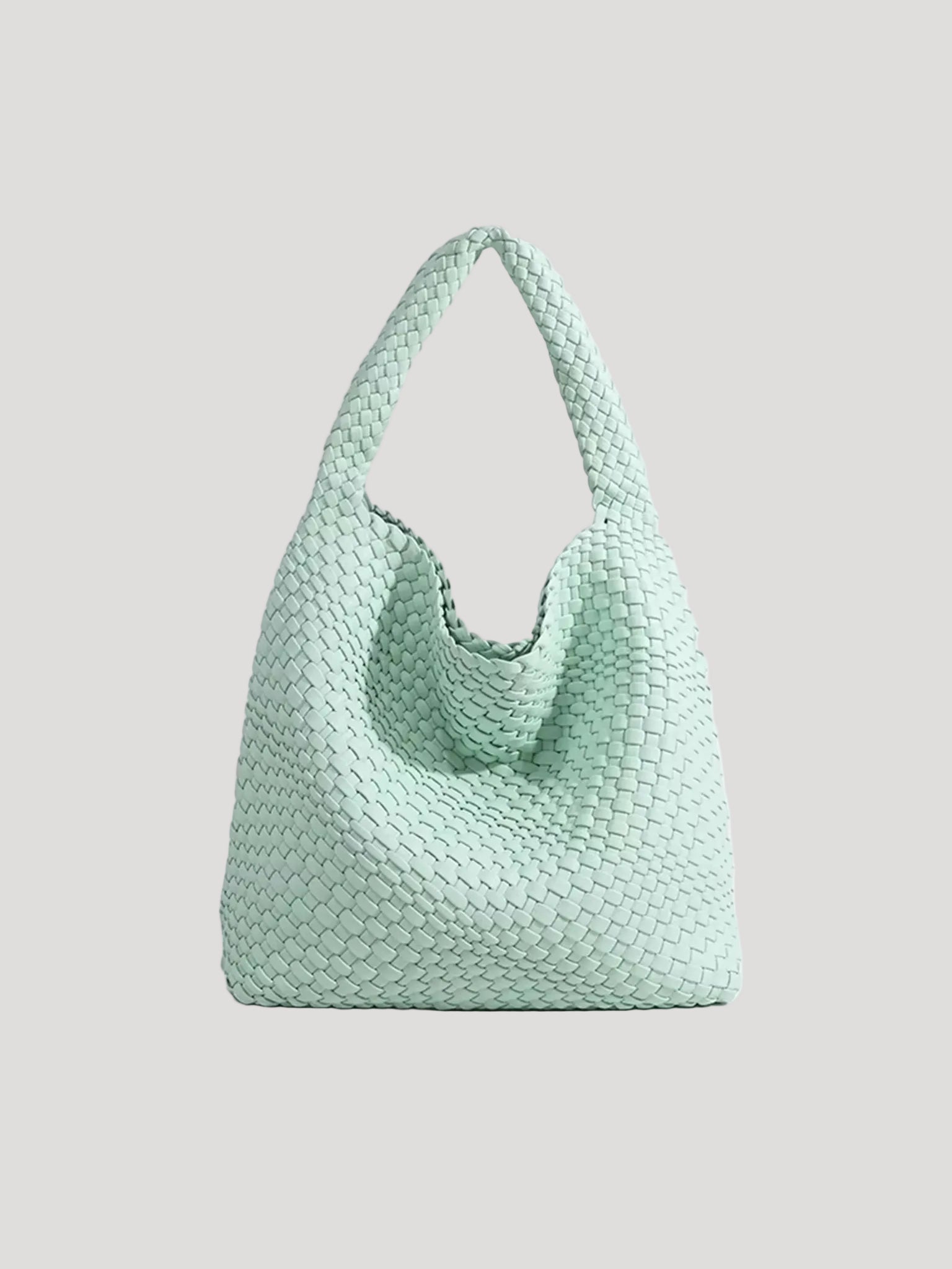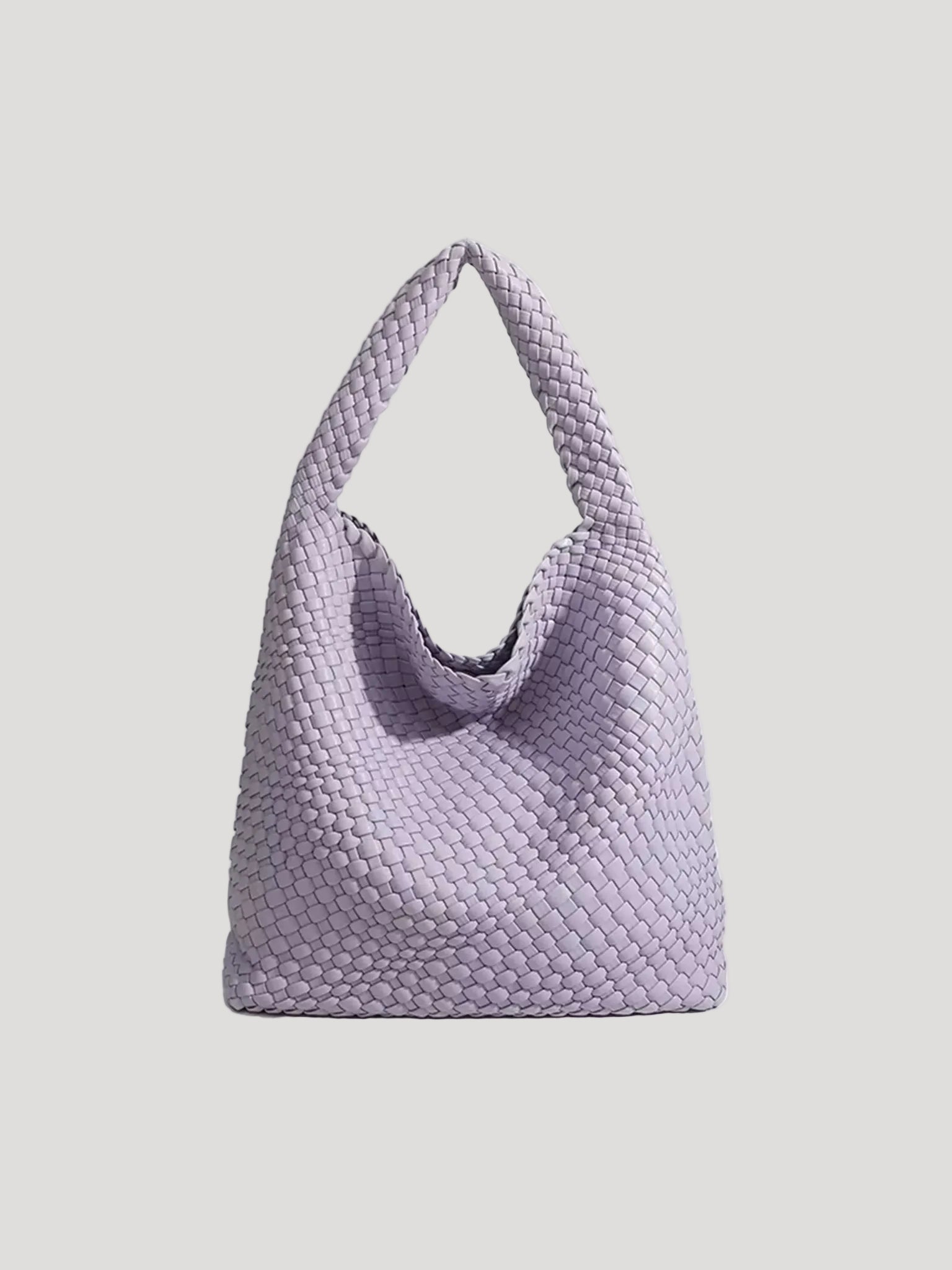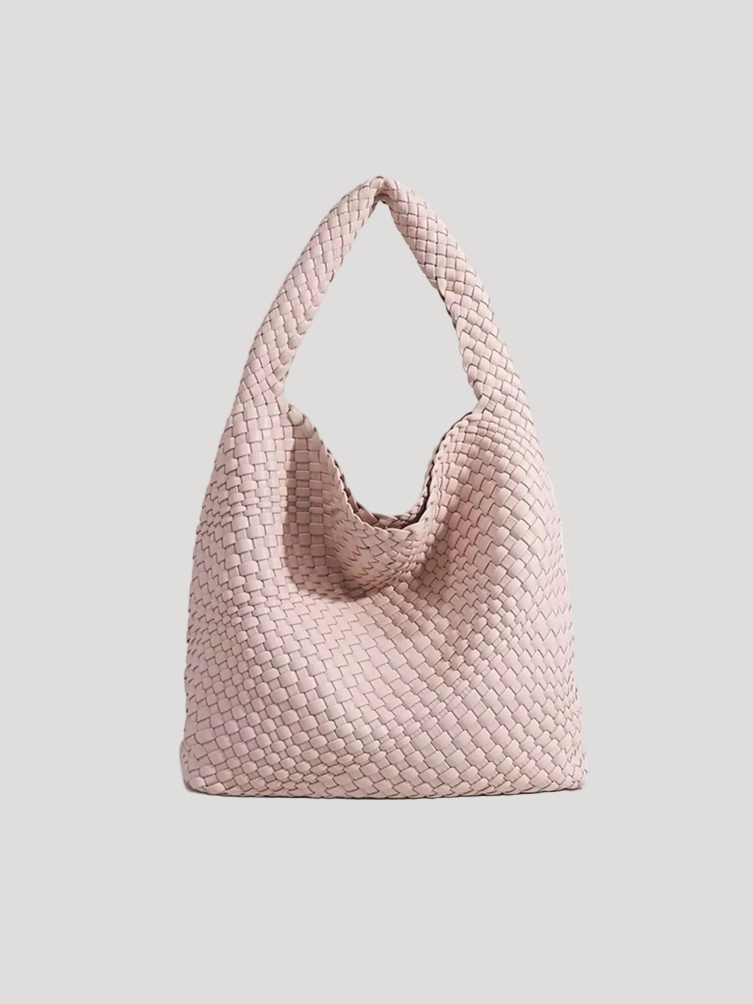 This women’s hobo bag features a soft, curved silhouette with a continuous woven surface. The design includes a wide, integrated shoulder strap and a relaxed structure that naturally adapts to movement when worn. Its medium-sized interior layout makes it suitable for carrying daily essentials in everyday and work-related settings.