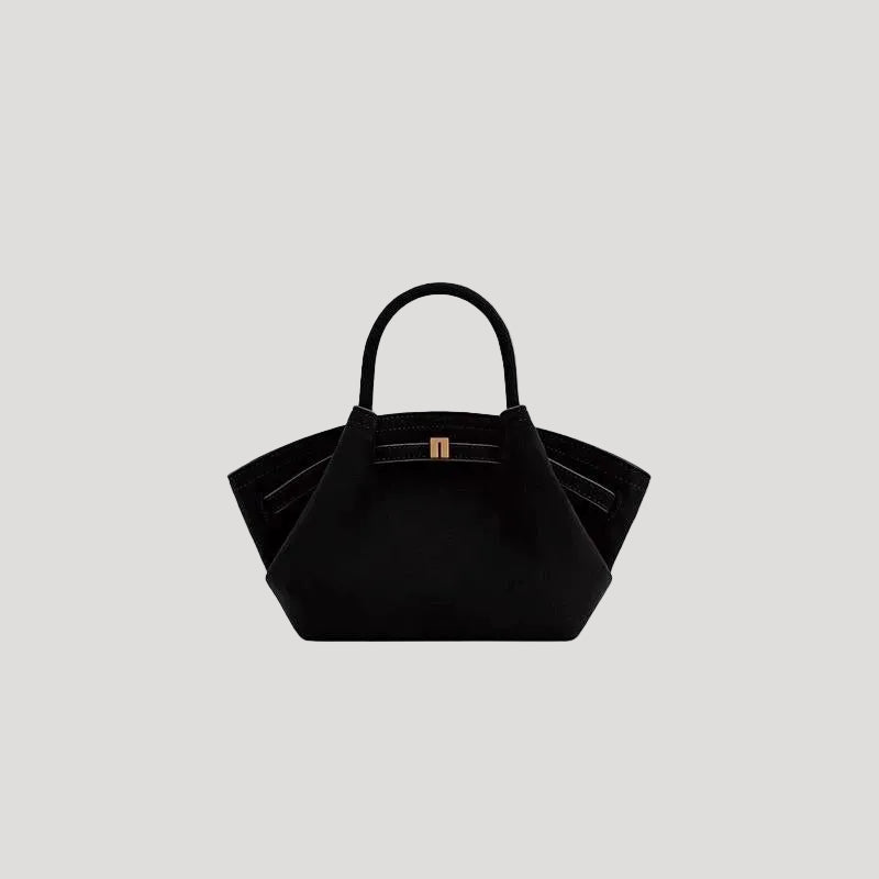 - Design: Structured silhouette with folded side panels