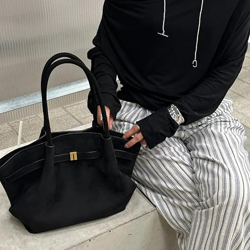 Women’s Structured Top-Handle Shoulder Bag with Folded Side Panels
