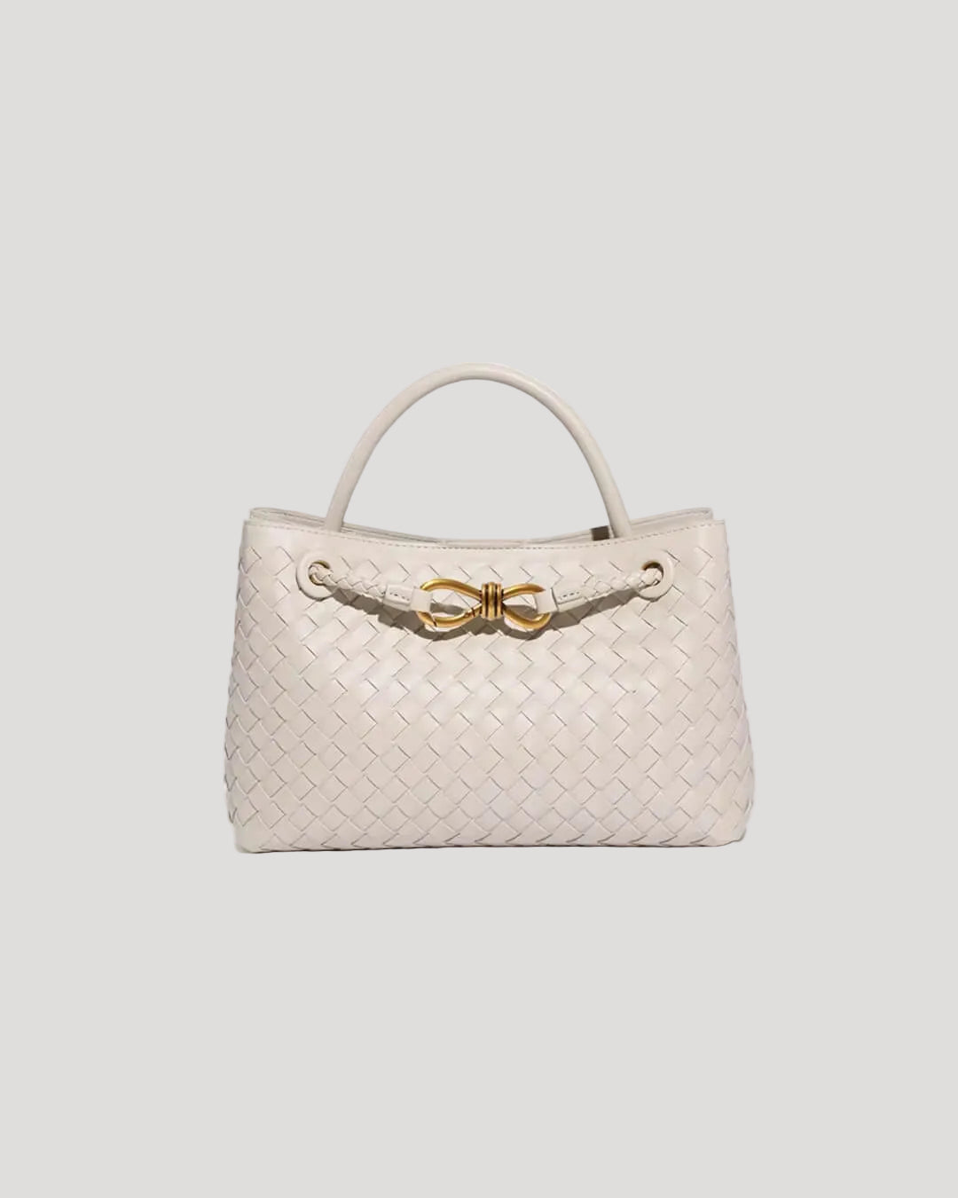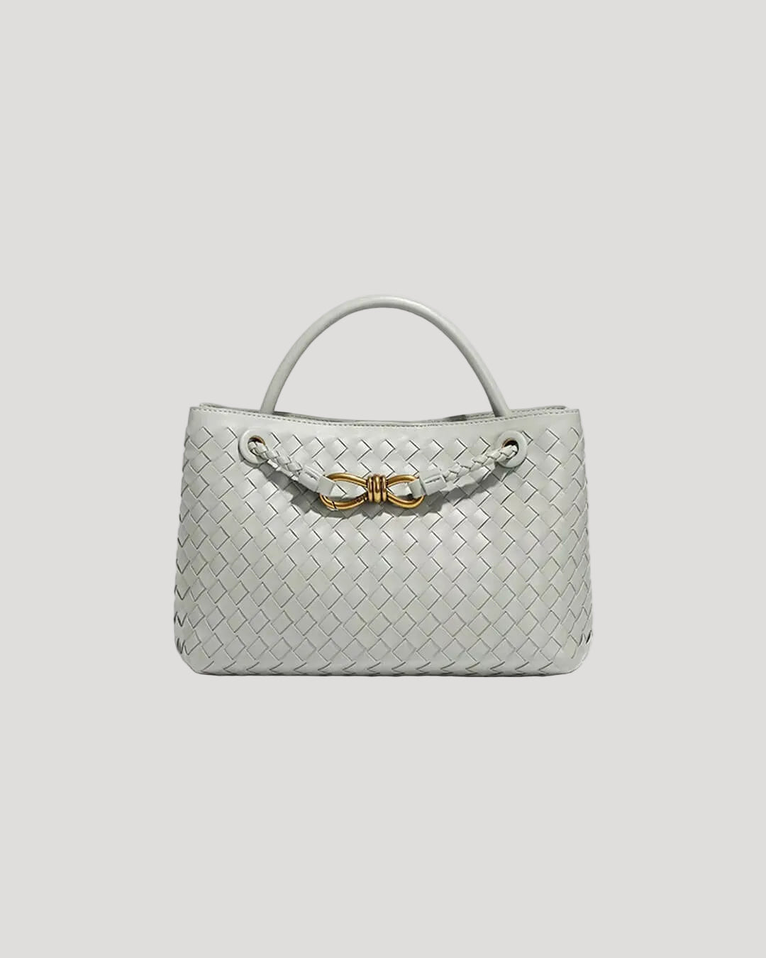 - Exterior details: Woven surface with front hardware detail