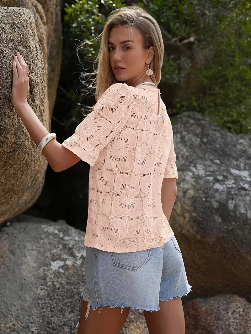 Women's Short-Sleeve Blouse with Eyelet Pattern